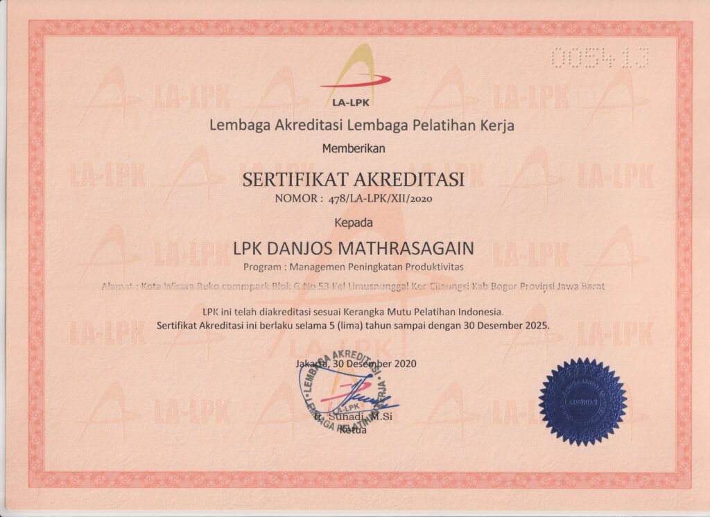 Sejak awal berdiri, LPK Danjos Mathras Agian berkomitmen untuk Membantu melatih dan meningkatkan produktifitas klien